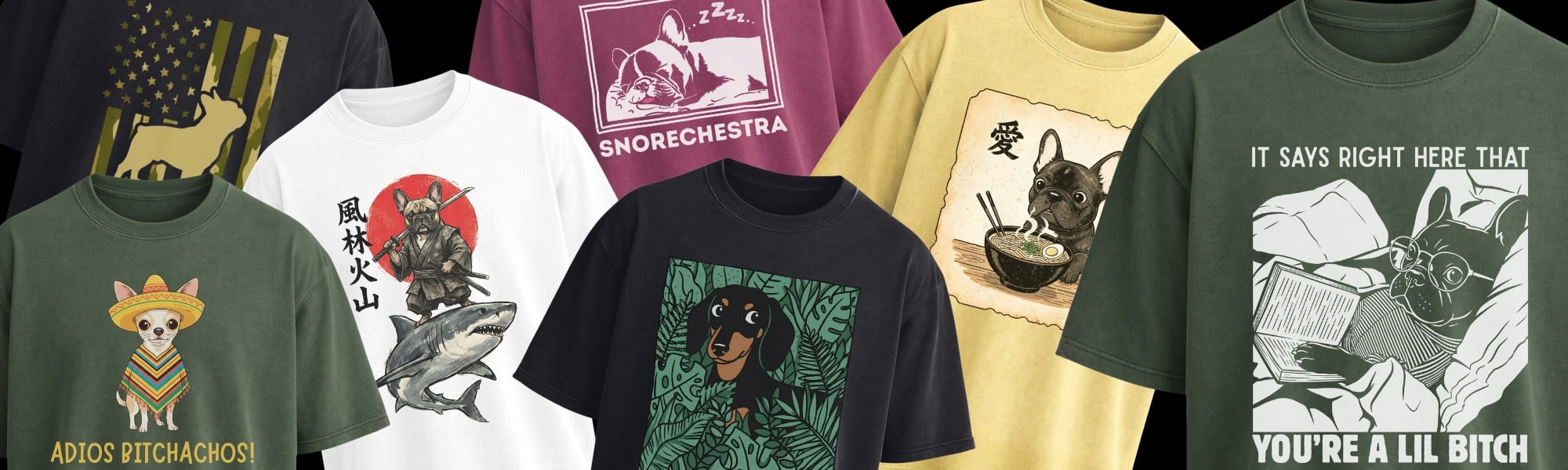 Samurai Frenchie Riding A Shark T-Shirt
